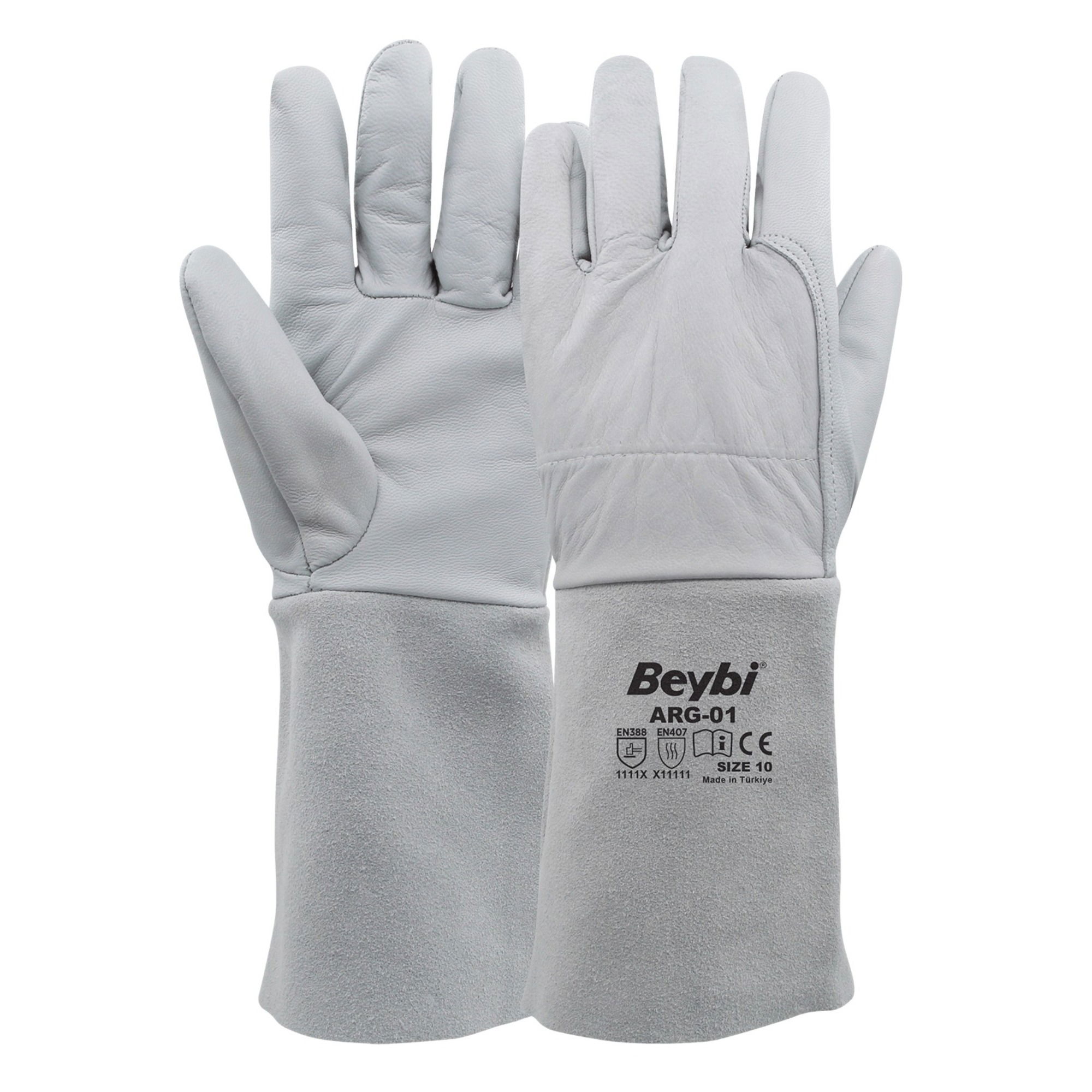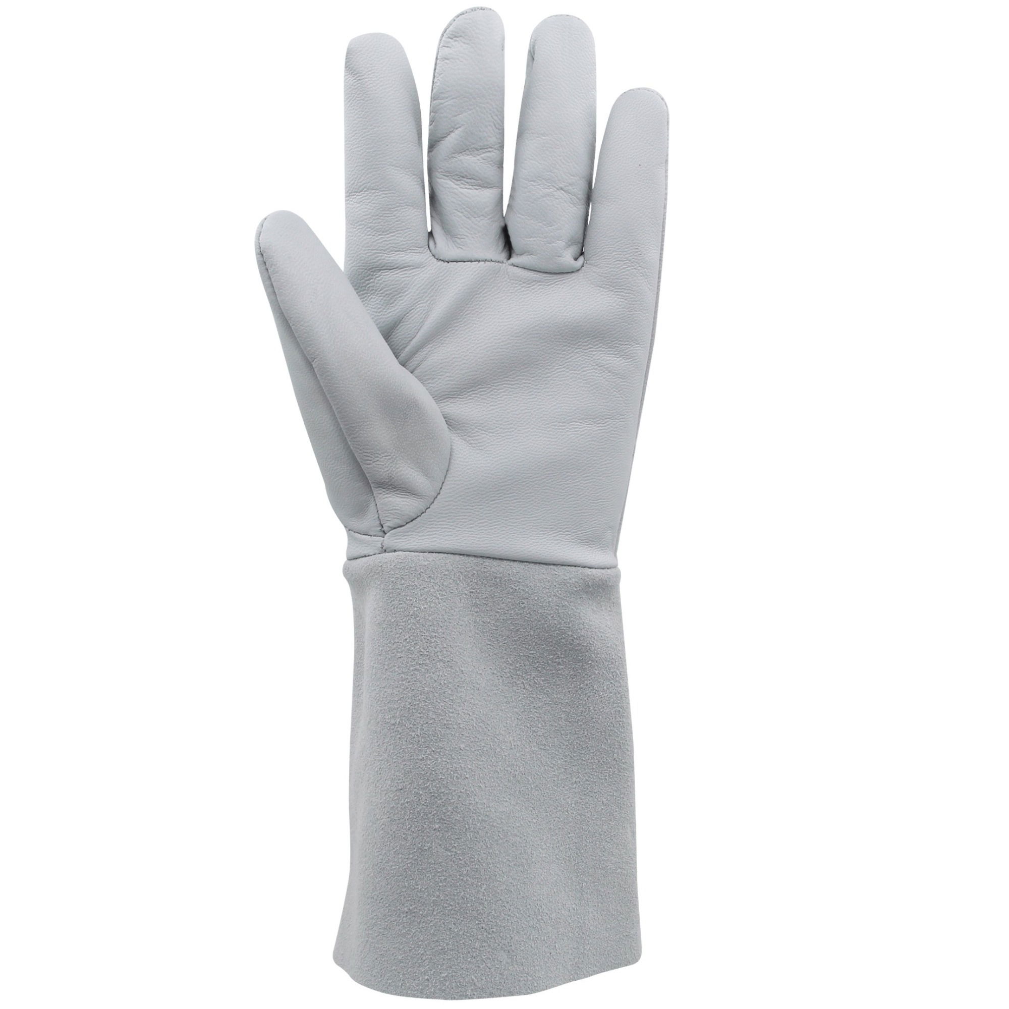 Avuç İçi ve El Üstü; Birinci Sınıf Keçi Derisi; Konç; Yarma Deri; Tanım; Avuç içi ve el üstü birinci sınıf keçi derisinden, konç kısmı yarma deriden üretilmiştir. İçten dikişli bir yapıya sahiptir.; EN388 Performans Değeri; 1111X; EN407 Performans Değeri; X11111