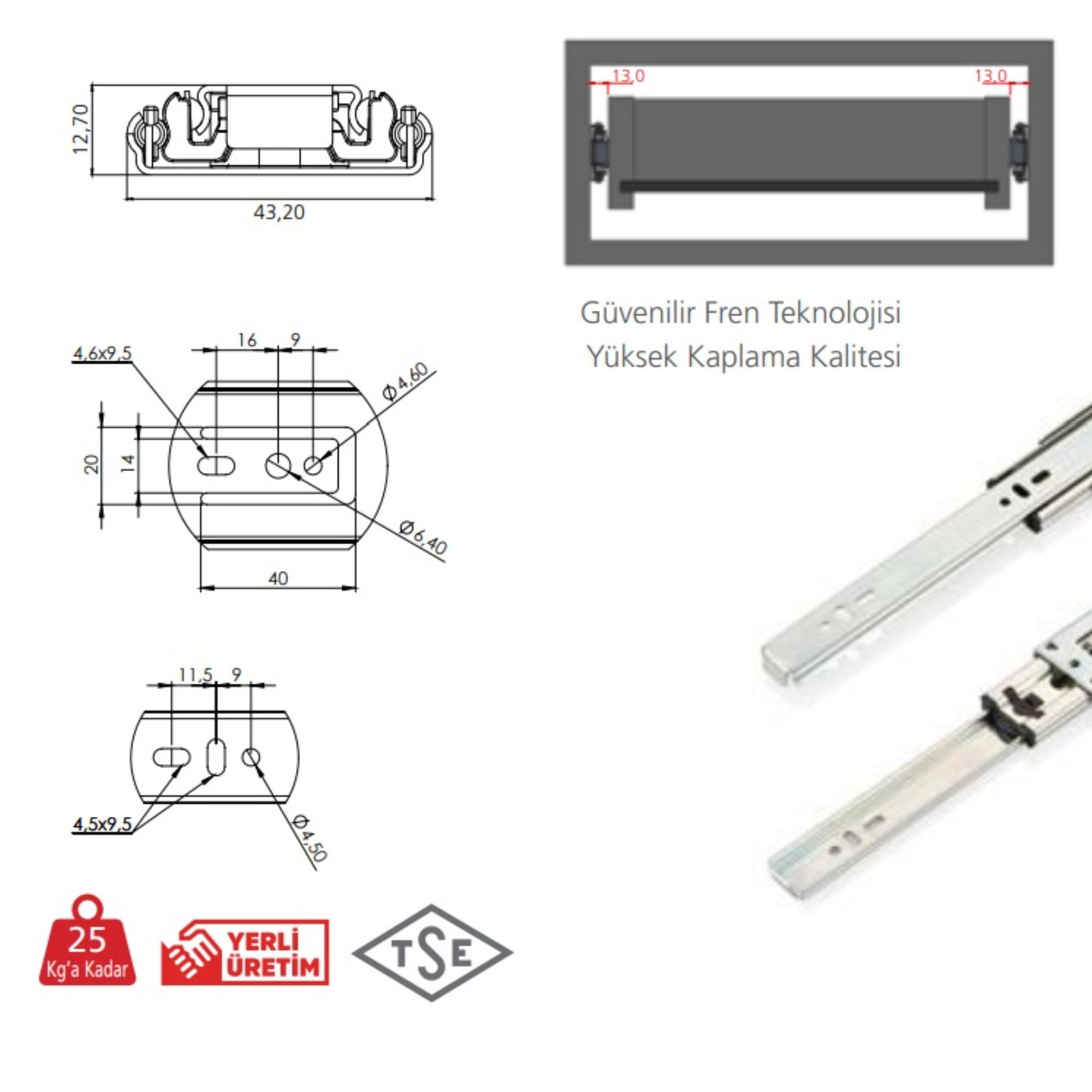 Çift açılım Teleskopik bilyalı çekmece rayları, çekmeceye yandan bağlanılan ray türüdür.; Sonuna kadar açılabildiği için çekmecenin tümünün görülebilmesini ve kullanılabilmesini sağlar.; Yüksek kaplama kalitesi.; Fren özelliği .; Kaliteli malzeme, sağlam ve güçlü yapı.